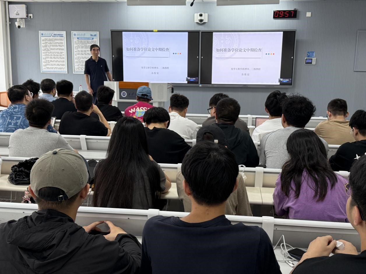 2025年6月18日上午,公司在教9-319教室成功举办了“关于学位论文中期检查的思考”专题讲座。本次讲座特别邀请到苏俊宏教授担任主讲嘉宾,60余名研究生到场聆听。