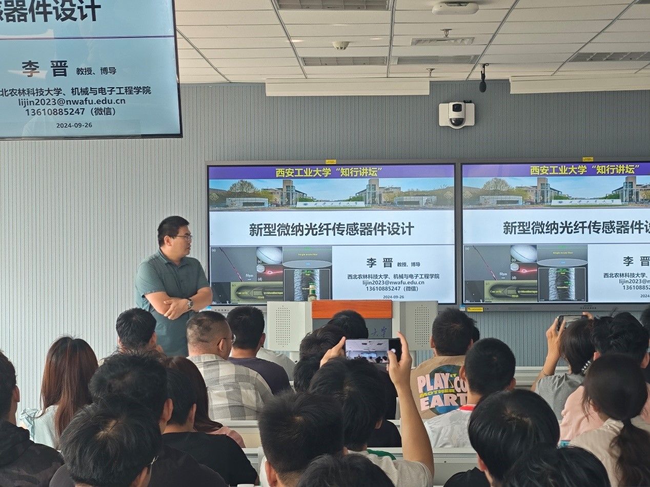 2024年9月26日上午,西北农林科技大学李晋教授应邀为公司师生作题为“新型微纳光纤传感器件设计”的学术报告,信誉最好的十大体育平台经理肖锋、党委书记蔡长龙、公司教师及研究生参加了报告会。