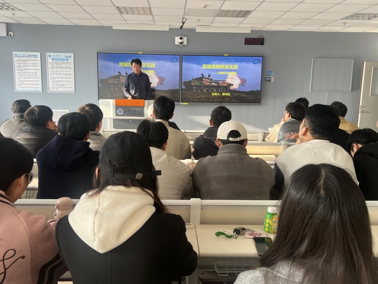 讲座以深入浅出的方式对常规炮弹进行了系统概述,重点聚焦于常规炮弹研发实践过程中的核心关键环节。张均法凭借其深厚的专业造诣和丰富的实践经验,对常规炮弹进行了全方位、多维度的深度剖析。最后,张均法与在场师生进行了积极热烈的互动交流,耐心解答师生们提出的各类专业问题。