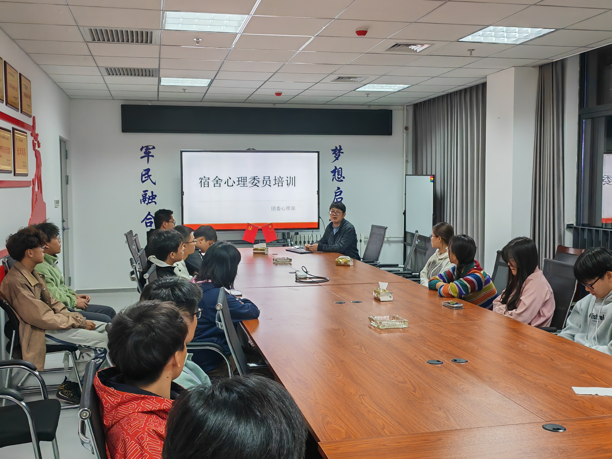 2023年10月19日晚8点,公司在教8—615召开宿舍心理委员培训座谈会。会议由王国栋老师主持,参加会议的有2021级、2022级各宿舍心理委员及团委心理部。