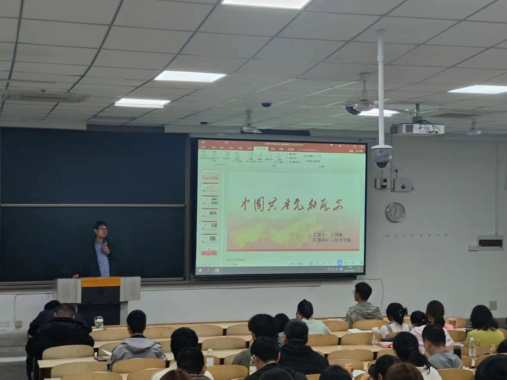 本次课程中,同学们认真聆听王国栋老师讲解,不时低头记录笔记。同学们表示通过聆听王老师本次讲解的党课,中国共产党百年波澜壮阔的历史进程在脑海中生动浮现。这对同学们了解党的百年奋斗历史,了解党的根本性质和宗旨,了解“党是个勇于修正自己错误的政党”这句话的意义有十分重要的帮助。