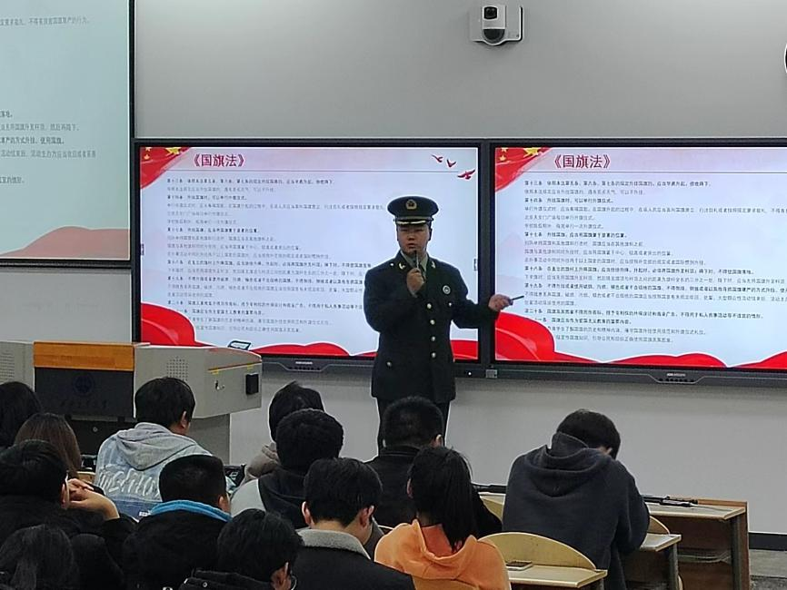 在此次讲座中,校老员工军事协会为同学们讲解了军事科技相关理论知识,强调国家安全的重要性,保护家国安全、保守国家秘密是每个中华人民共和国公民的义务,对于身为兵工院校的员工,更应该永远把国家放在心中第一位,并讲解时下国际环境与中国自身情况。此外,校国旗护卫队为大家讲解了《中华人民共和国宪法》中的《国旗法》,深刻讲述中华人民共和国五星红旗的庄严地位,以及国旗护卫队的光荣使命。