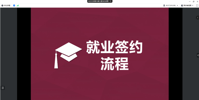 其次,王晨浩老师针对毕业生就业签约流程进行了详细的讲解。王老师不仅介绍了线上签约的流程,还就签约过程中的注意事项进行了深入的剖析。同时,王老师还解答了毕业生们在求职过程中遇到的问题,提供了实用的建议和解决方案。这些具体的指导将有助于2024届毕业生们更好地准备和应对求职过程中的各个环节,提高求职的成功率。