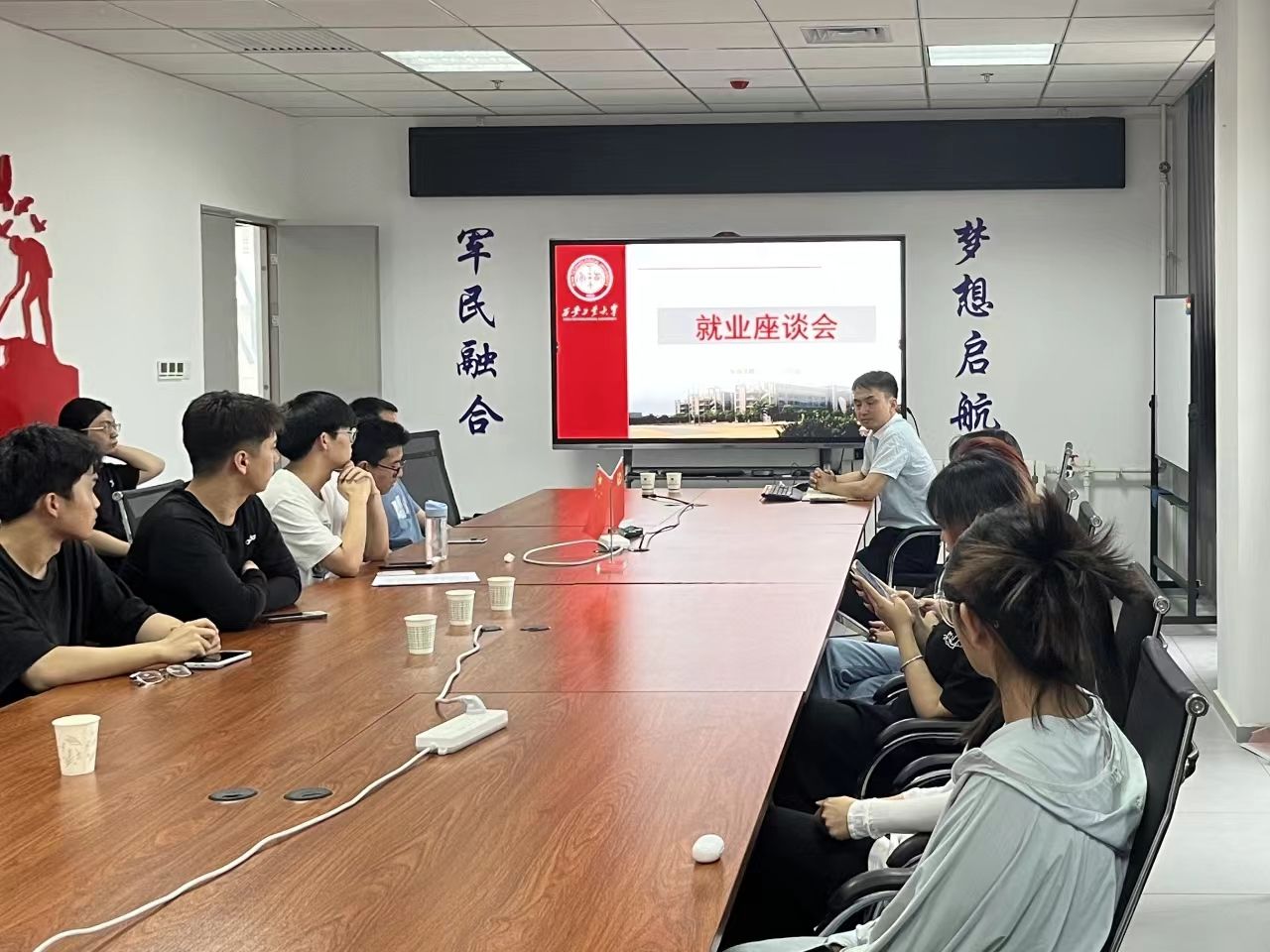 6月3日下午18:30,信誉最好的十大体育平台于教8-615组织就业工作座谈会。本次座谈会由公司党委副书记梁伟樯主持,参会人员为2021级探测制导与控制技术专业本科生。