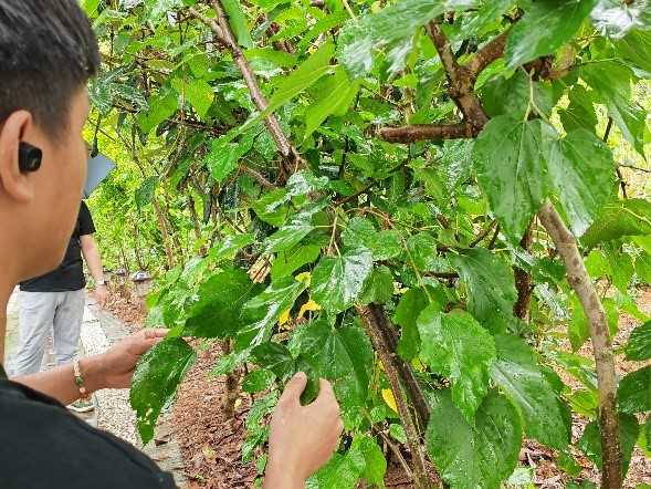 为进一步探索“金蚕小镇”乡村振兴的奥秘,实践队前往被誉为“最美桑海”的景区。漫步于郁郁葱葱的桑林之间,队员们仿佛置身于绿色的海洋,感受着大自然的恩赐与生命的律动。在技术员的专业指导下,他们细致观察了桑树的生长状况,学习了科学的种植管理技术。随后,走进养蚕中心,亲眼目睹了幼蚕从孵化到成长的每一个细微变化,对蚕桑业的生态循环和经济效益有了更为直观和深刻的认识。