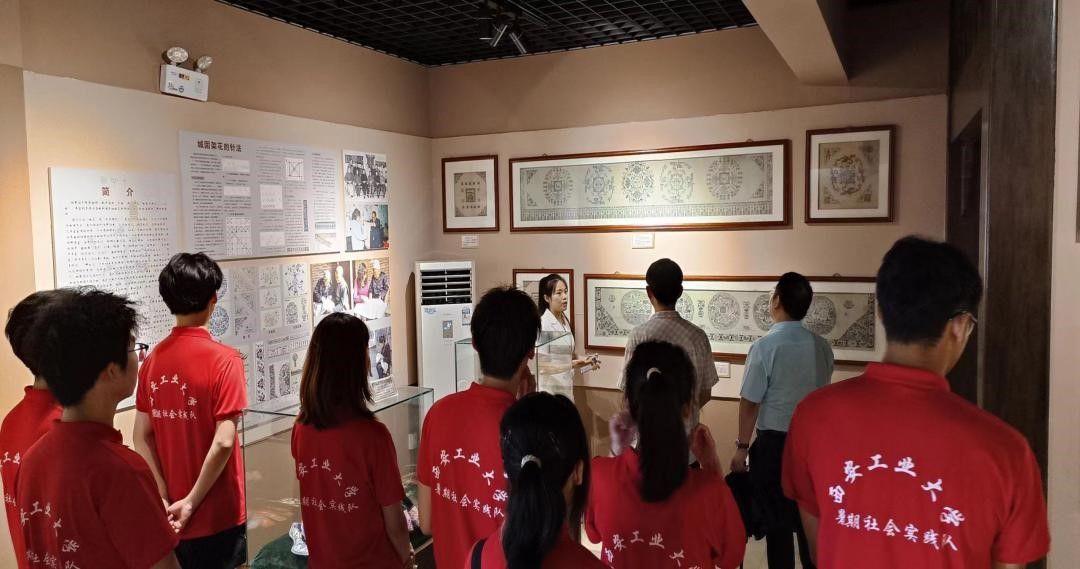 仪式开始前,文化馆负责人带领公司师生参观了非遗展示馆和书画馆,详细介绍了城固县架花、张骞传说、城固剪纸、城固泥塑等当地特色非遗文化作品展。