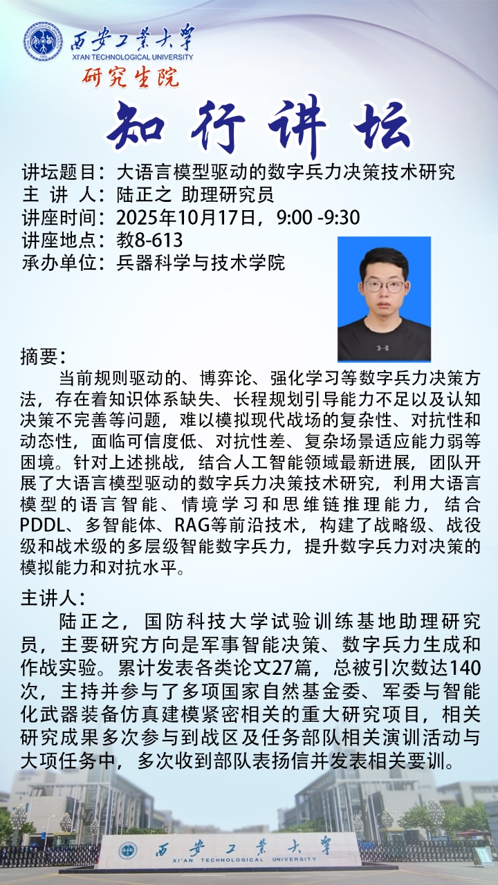 上一条:知行讲坛:武器装备数字化试验探索与实践 下一条:知行讲坛:平行战场关键技术